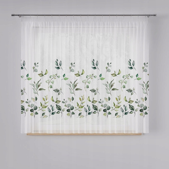 Firana szer 270x150 Na Woalu Biała Liście Z Taśmą