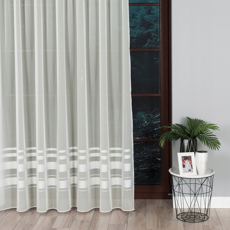 • Firana kremowa z wszyta taśmą marszczącą, lekka, stylowa, ozdobne pasy