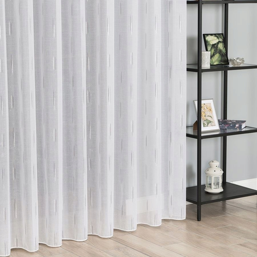 Firany Z Taśmą Marszczącą Firana Do Salonu Biała Szary Srebrny sz.150x170