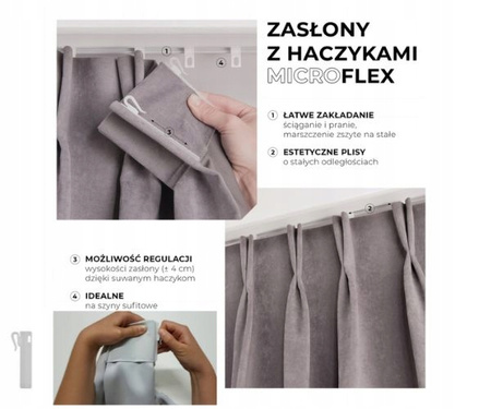 - Dzięki mechanizmowy flex i dobranymi zaczepami możesz regulować wysokość zawieszenia zasłony względem karnisza, czy szyny.