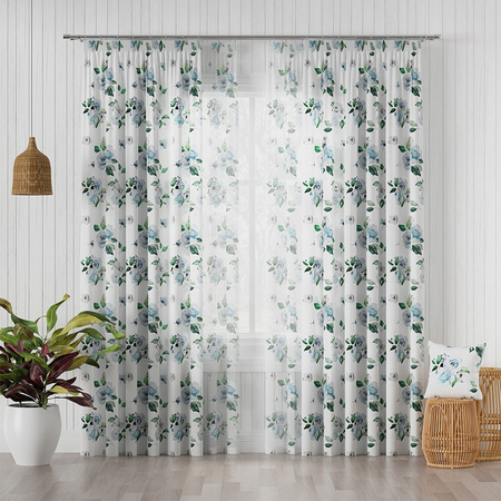 • Zasłona dekoracyjna praktyczna ,motyw roślinny, subtelna kolorystyka. Zasłona posiada obszyte boki oraz wszytą taśmę marszczącą.