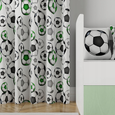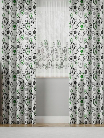 • Zasłona dekoracyjna dziecięca, motyw futbolu, piłka nożna. Posiada wszytą taśmę marszcząca.