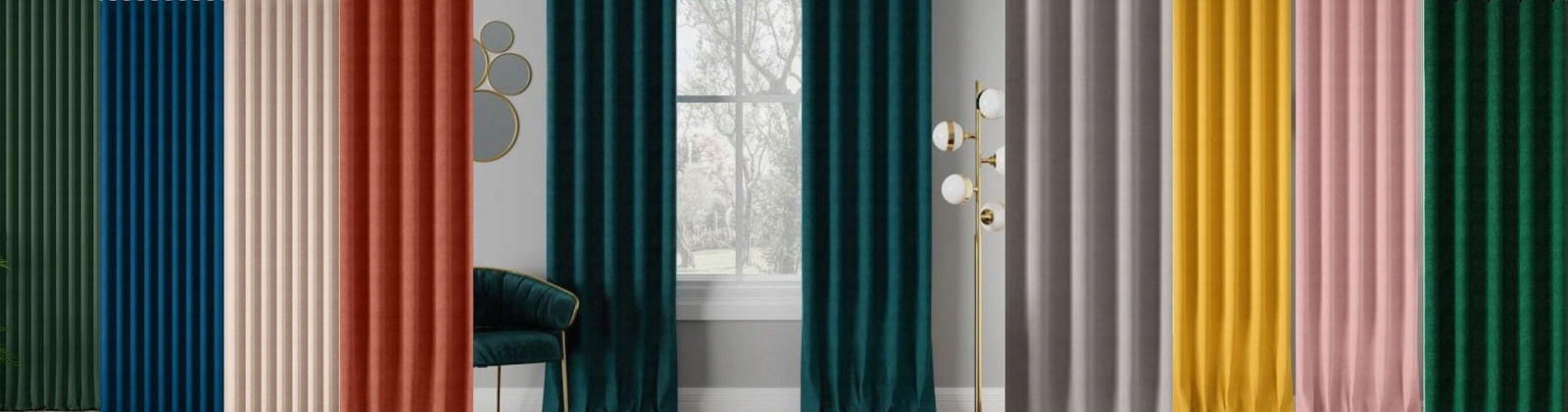 - zasłony wykonane z miłego w dotyku materiału, tkaniny welurowej